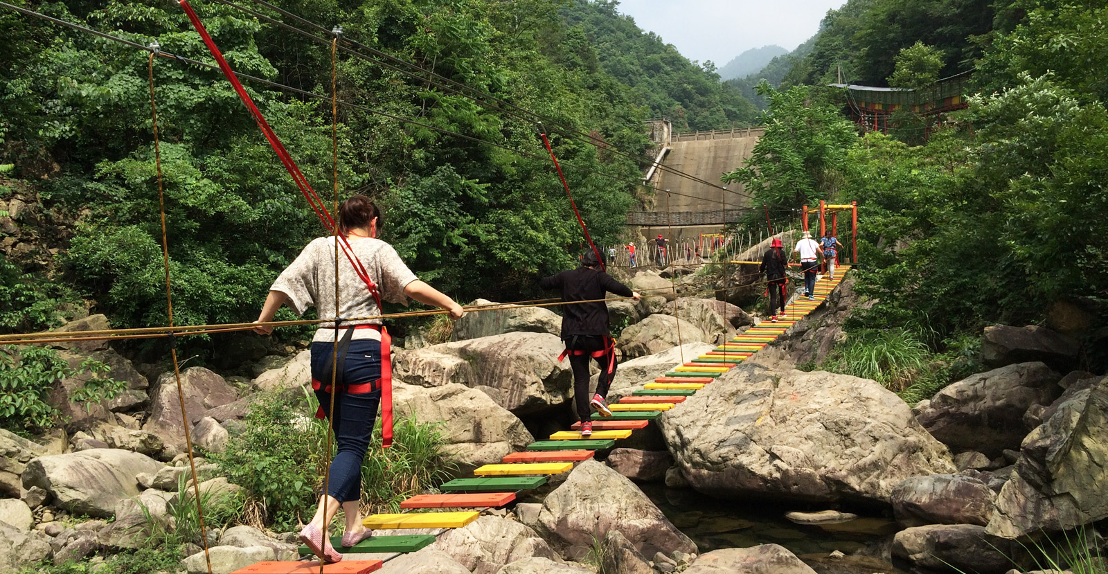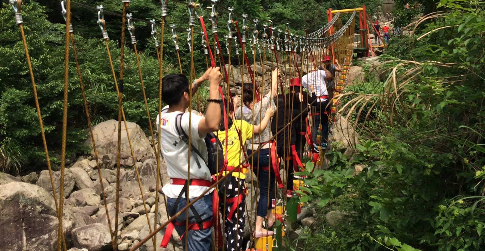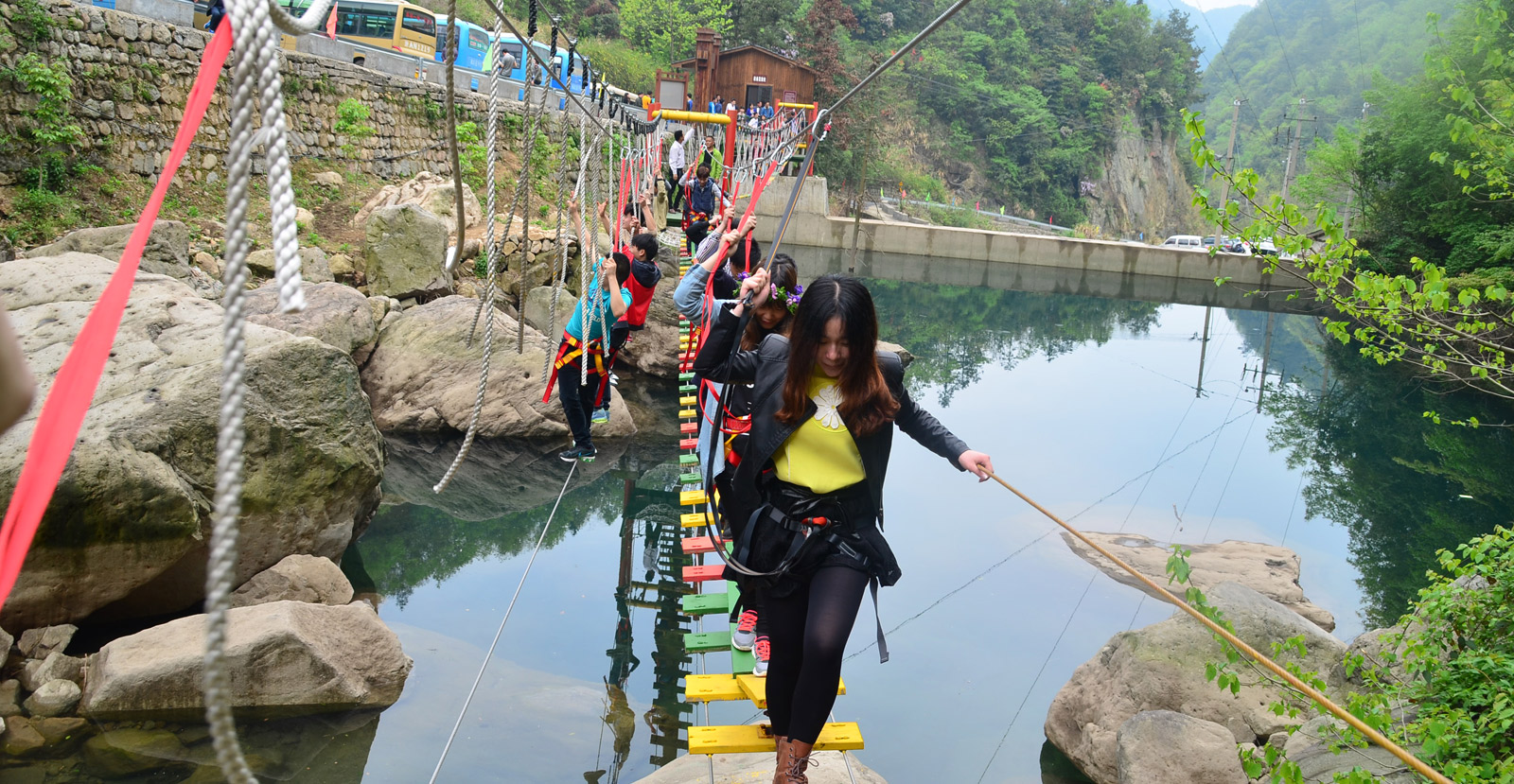 【龍井峽闖關(guān)】在峽谷中穿越玩驚險(xiǎn)刺激的戶外拓展。從美食街吊腳樓前開(kāi)始,沿峽谷建造了大型拓展項(xiàng)目,